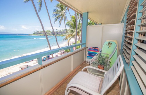 This charming studio resides on the second floor of a two-story building positioned directly on the sands of Napili Bay. As an original vintage studio, it features a fully equipped kitchen and a balcony that presents remarkable views of the great Pacific Ocean. You may even spot whales, dolphins, and turtles right from the comfort of your condo!