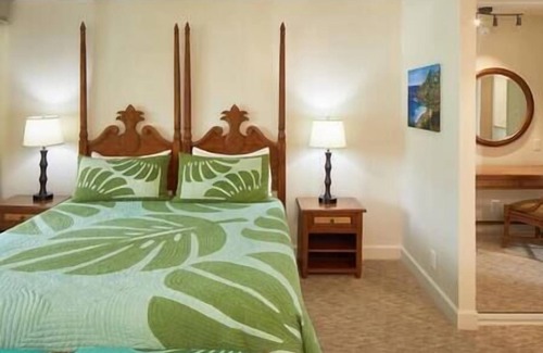 The Cliffs at Princeville lies within the Princeville Resort on over twenty acres of lush tropical land. The Cliffs offer the quiet privacy and comforts of spacious suites in both one-bedroom and and one-bedroom loft configurations. Each suite is tastefully adorned with upscale, Polynesian furniture and authentic Hawaiian decor and feature familiar comforts such as a fully-equipped kitchen with granite countertops, two full bathrooms, two private lanais, separate living area and a private master bedroom.