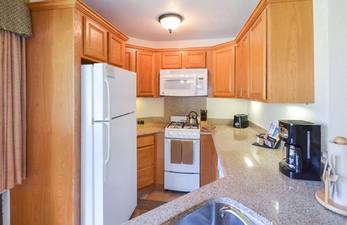 Your one-bedroom condo, designed to accommodate up to four guests, features a comfortable king bed in the master bedroom and a queen sleeper sofa in the living room. Enjoy the convenience of a fully equipped kitchen and complimentary Wi-Fi, with linens and towels provided for your stay.