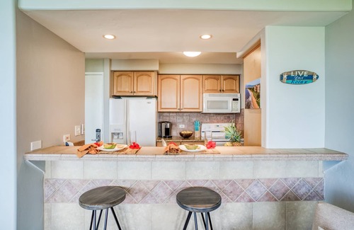 Welcome to your idyllic getaway at the Beach Front Ocean View Penthouse Kealia Resort Condo - Sugar Beach, where breathtaking views of the ocean, West Maui mountains, and Kealia Pond National Wildlife Refuge await you. This stunningly updated penthouse condo in Kihei, Hawaii, provides a tranquil retreat, fully air-conditioned, and meticulously designed for your comfort.
