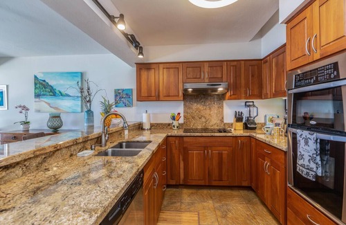 The bright glass-enclosed atrium or private lanai provide perfect spots for spotting whales (Nov-Apr), dolphins, tropical birds, rainbows, sailboats, and surfers. In the evenings, fire up the gas BBQ while taking in exclusive sunset views over the Pacific Ocean and the majestic Bali Hai.