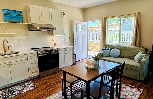 New charming studio rental located on the owner's property in beautiful Kailua, Hawaii. Perfectly situated just moments away from stunning beaches, lush landscapes, and quaint town. This cozy retreat offers a unique blend of comfort, convenience, and island charm. The studio features a comfortable queen-sized bed, a pull out couch, a well-equipped kitchen for all your culinary needs, and a cozy seating area perfect for relaxing after a day in the sun. Enjoy your morning coffee or evening cocktails in your outdoor space, surrounded by the soothing sounds of nature.