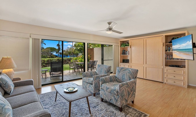- Private oceanview lanai enveloped by lush gardens, ideal for al fresco dining or unwinding with a good book