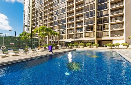 Yes, this Honolulu condo has a swimming pool. Check the Facility Overview section for details about the pool and other available facilities.