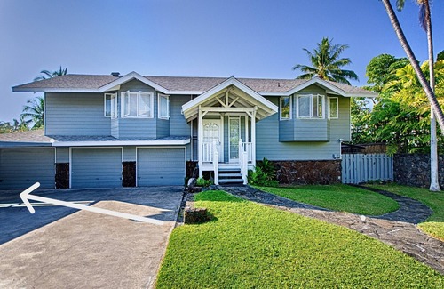 Your stay will place you just a stone's throw from the thrilling Manta Ray dives that take place each evening, a must-see for any visitor. You can also bask in the sun while watching sea turtles at He'eia Bay's black lava rock beach, which features stunning coral accents. The nearby property boasts a beautiful 50-foot-long fish-shaped pool, where you can lounge under the soothing sounds of the Pacific Ocean. Enjoy your mornings with the tranquil songs of local birds, and take advantage of the spacious lanai for relaxing meals or barbecues with loved ones. With comfortable king-sized beds and amenities that cater to your needs, this charming location is ideal for unwinding after exploring iconic sites like Kailua Pier and the captivating Kona Coast.