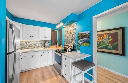 Welcome to your serene getaway at the EL L102 Remodeled 1BD Condo w Pool AC Beach Cabana, a splendid accommodation where you can enjoy all the wonders that Maui has to offer. This stunning condo is designed for family fun and relaxation, featuring a brand new kitchen equipped with modern appliances and an attractive backsplash that invites culinary creativity.