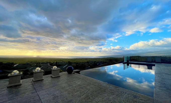 Step onto the lanai, and you will be greeted by stunning panoramic views of the ocean, with picturesque Kohala Mountain to the north and the island of Maui visible on clear days. The spacious lanai is equipped with ample seating and a BBQ grill, setting the stage for memorable outdoor gatherings. Take a dip in our luxurious 36ft infinity edge heated pool, completed in May 2016, while soaking in extensive ocean views and indulging in spectacular sunsets.