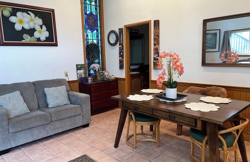 Unwind in Haleiwa at this charming apartment. This superb rental features 1 bedroom with a king bed, a cozy living room with a day bed and a bathroom stocked with a hair dryer. Guests can enjoy amenities like WiFi, AC, and a washing machine during their stay. Experience what Haleiwa has to offer with a stay at our apartment.