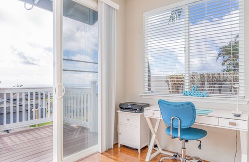 Enjoy a tropical getaway at our stunning Hawaii home. With gorgeous views of both the ocean and mountains, our vacation home is designed to make your stay in the heart of the Pacific Ocean an unforgettable experience. Our bright furnishings and spacious living area create a warm and inviting atmosphere for you and your guests to enjoy. Take in the wonderful views as you sip your morning coffee or enjoy cocktails admiring the gorgeous sunrises and mesmerizing sunsets from our deck. Our bedrooms offer the perfect escape for rest and relaxation after a day filled with adventure.