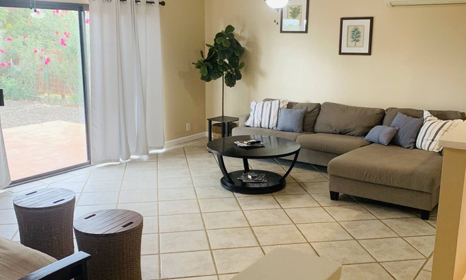 This Great Community Home Near Famous Beaches w/ AC shares its grounds with another unit; however, privacy is maintained as you share only the front gate and yard areas. Guests staying three nights or longer will have access to the washer and dryer facilities for added convenience.