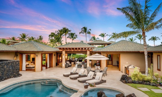 Best-rates for the Kamuela house starts from $4,034 per night with includes Laundry, Air Conditioner, TV, Private Pool, Security/Safety, Guest Services, Internet, View, Ocean View, Bedding/Linens, Fireplace/Heating, Hot Tub, Parking, Pool, Balcony/Terrace, Sports/Activities, Wellness Facilities, Kitchen, Oceanfront, Accessibility, Entertainment, Barbecue/Outdoor Cooking, Child Friendly with all amenities included. HawaiiVillas pairs each traveler with their ideal accommodation, whether traveling with a group, family, friends, or pets.