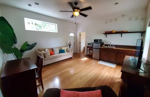 This space offers a clean and comfortable environment filled with all the amenities necessary for an unforgettable Hawaiian getaway without straining your budget. You will appreciate the private entrance and bonus laundry facilities. Rest well on our exceptionally comfortable posturepedic mattress, recharging for your daily escapades. We even provide beach towels and a cooler for beach trips, along with optional snorkel gear rental to enhance your island adventure!