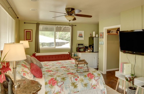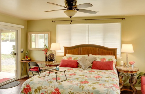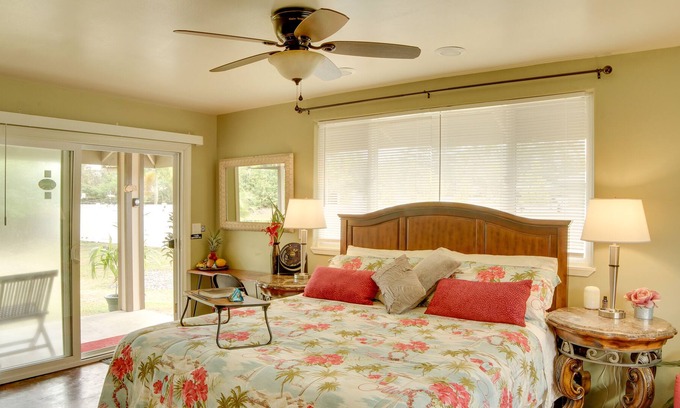Transform your tropical aspirations into reality at the Hawaiian Paradise Park Retreat w/ Soaking Tub, located in the picturesque setting of Keaau. This charming 1-bath studio is designed for your ultimate relaxation after an adventurous day exploring the beauty of Hawaii.