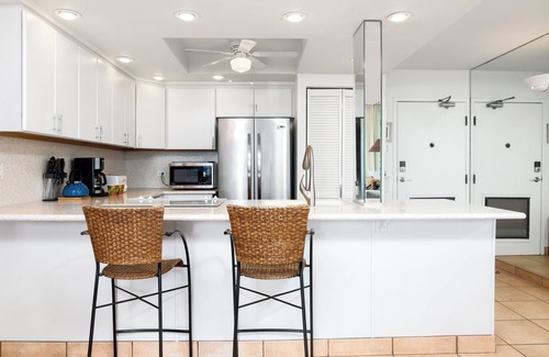 GeneralMemory foam mattress, Number of bedrooms - 2, Dishwasher, Full-sized refrigerator/freezer, Microwave, Stovetop, Laptop-friendly workspace, Square feet - 1050, Ping - 30, Number of living rooms 1, Number of bathrooms - 2, Separate dining area, Square meters - 98, Cookware, dishware, and utensils, Private bathroom, Kitchen, No rollaway/extra beds, Desk, No cribs (infant beds), Oven, Ocean view, Lanai, Bed count minimum 2, Bed count maximum 2 |