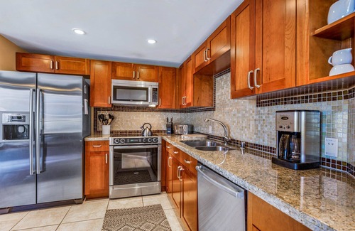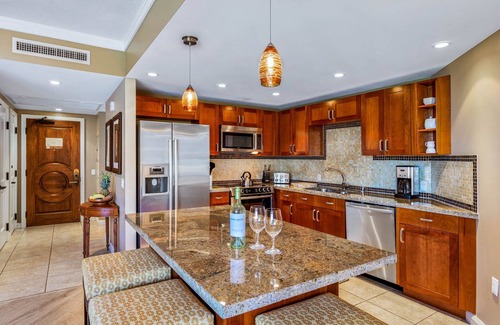 With its prime location merely 26 miles from Kahului Airport (OGG) and right on world-famous Ka'anapali North Beach, this sandy beachfront retreat gives you immediate access to all your favorite water activities.