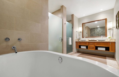 This exceptional 3.5-star hotel features 131 air-conditioned accommodations equipped with modern conveniences like washers and dryers, as well as DVD players for your entertainment. Each room opens up to private lanais, designed to enhance your Hawaiian getaway. You will find queen sofa beds in your accommodation, ensuring flexibility and comfort during your stay. The well-appointed kitchens come complete with refrigerators, stovetops, separate dining areas, and dishwashers, making it easy to prepare your favorite meals. Indulge in spa-like experiences in the bathrooms, which include separate bathtubs and showers along with designer toiletries.