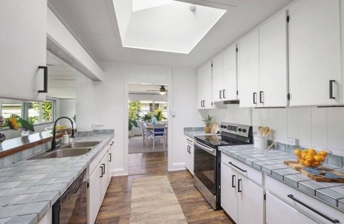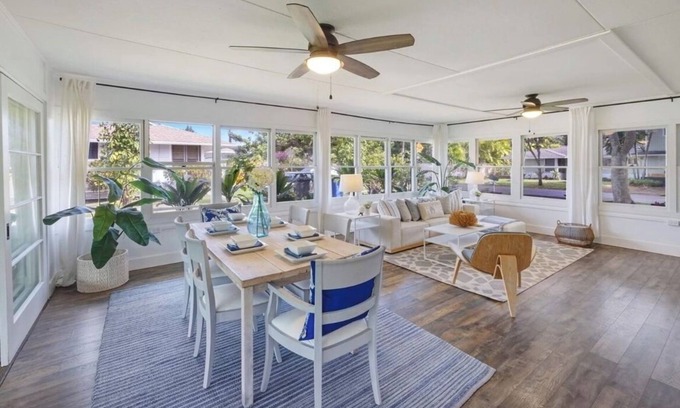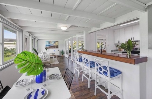 Immerse yourself in the enchanting beauty of Kailua while staying at the stunning Kailua Beach Bop. This charming Hawaiian-style home invites you to awaken each day to the soothing sounds of nature in a tranquil, tree-lined neighborhood.