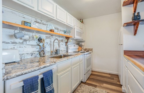 Oceanfront with beach-style decor, a full equipped kitchen, a master bedroom with a Cal King bed and a full bathroom with shower and tub. Comfortably sleeps up to 4. The living room has a full size sofa sleeper.