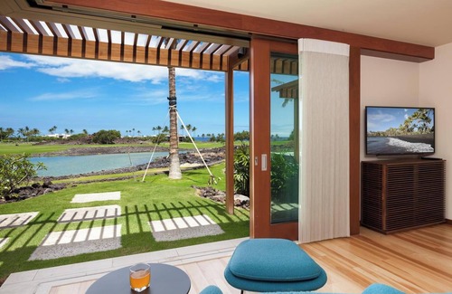 Inspired by a deep respect for nature, the design of Kipuka Lani utilizes natural materials that invite the refreshing Hawaiian breezes and sunlight indoors. The expansive Great Room features sliding walls that open up to create an uninterrupted flow between your living area and the breathtaking views of the nearby golf course and ocean.
