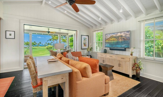 This 1,275-square-foot bungalow serves as a wonderful hideaway for couples or solo travelers looking to embrace the comfortable lifestyle of Kukui’ula.