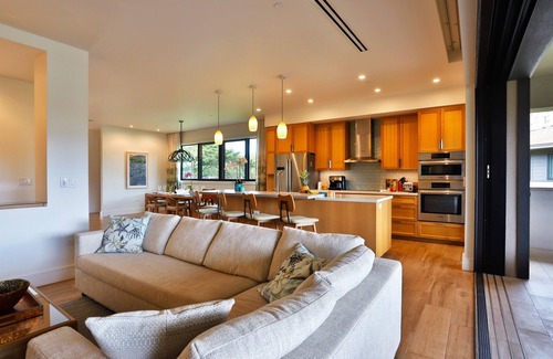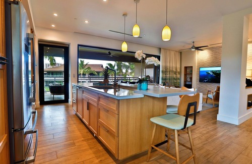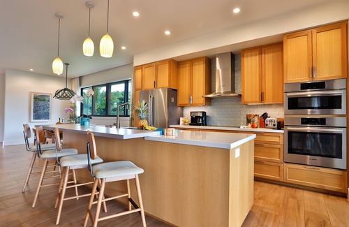 Your stay at the Luana Garden Villa 3C offers 2,047 square feet of refined living space on the upper floor of Building 3, complete with a sprawling 521-square-foot lanai. Here, you can enjoy your own private outdoor kitchen while overlooking the tranquil pool area exclusive to Enclave One. Sip on a refreshing drink as you bask in the glow of Tiki torches or gather with friends around the cozy fire pit after a refreshing swim.