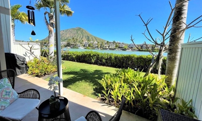 Experience spacious waterfront living in Hawaii Kai's prestigious Mawaena Kai, overlooking the serene West Marina with stunning Koko Head views. This 2-bedroom, 2-bathroom first-floor townhouse offers 1,012 sq. ft. of interior space plus a 68 sq. ft. lanai, perfect for enjoying the gentle ocean breezes or stargazing at night. Designed for both indoor and outdoor entertaining, this rare find features a formal dining room, a spacious kitchen with ample storage, and two private lanais at the entry, with an additional marina-facing lanai at the back. Located just minutes from Hawaii Kai Town Center, shopping, restaurants, and more, this home offers a casual yet luxurious marina-front lifestyle. Pets are negotiable. THIS IS FOR VACATION RENTAL (minimum of 30 days)