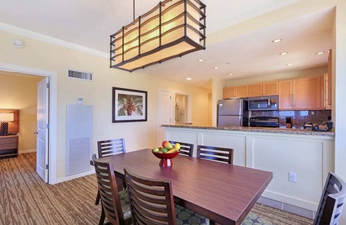 Your home away from home includes a fully equipped gourmet kitchen adorned with elegant granite countertops and modern stainless steel appliances. Indulge in relaxation within the master bath, featuring both a glass shower and an air bubble jacuzzi tub. The villa is thoughtfully designed with your comfort in mind, boasting flat panel TVs in both the living area and the bedroom, along with Westin's renowned King-sized Heavenly Bed. For added convenience, a washer and dryer are included within the villa.