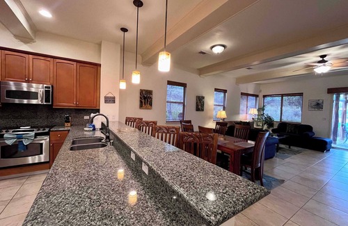 From your vacation home, you're just a 15-minute walk to the exciting Great 4-D Movie Ride, an engaging experience for all ages. For golf enthusiasts, the coveted Mauna Lani Resort Golf Course is merely a 6-minute drive away, promising unforgettable rounds against a backdrop of gorgeous scenery. Spend leisurely afternoons basking at the beach or relaxing by the outdoor pool at your property. Additionally, enjoy communal areas like the garden and outdoor entertainment space, perfect for unwinding after a day of exploration. Your stay in Kamuela promises a blend of adventure and relaxation, making it a truly remarkable getaway.
