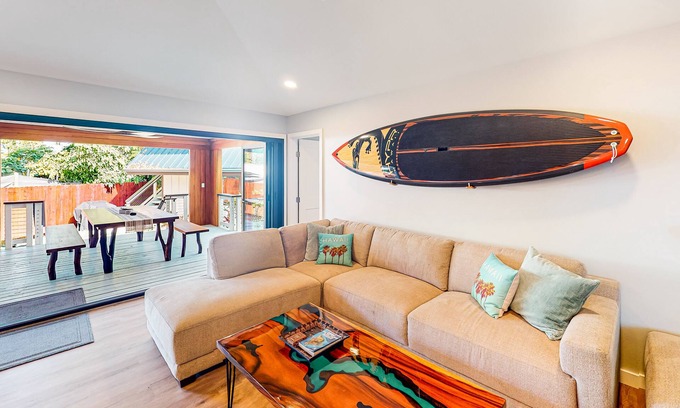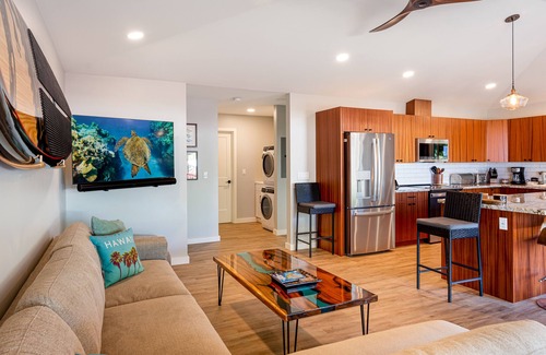 Plan your next Hawaiian escape at this inviting modern bungalow, where every detail is curated for your enjoyment and relaxation.