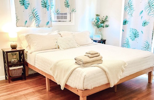 When staying at the NEW Seaside Sanctuary ~ Beach Access, Views, A/C, you're just steps away from a secluded beach where you can snorkel and swim in calm, gentle waters. Enjoy the spacious living area that opens to a large covered deck while relishing the forest views from your bedrooms, which comfortably accommodate up to 8 guests. Nearby attractions include the exhilarating Kualoa Ranch, famous for its zip lines, horseback riding, and cinematic history featuring films like Jumanji and Jurassic Park. Local conveniences such as food trucks and a country market are within walking distance, making it easy to experience delicious local cuisine. For a slice of paradise on Oahu's North Shore, the Seaside Sanctuary offers the perfect retreat that balances adventure and relaxation.