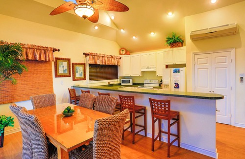 The kitchen is equipped with a refrigerator, stove/oven, microwave, toaster oven, toaster, blender, coffee maker, rice cooker, dishwasher, pots, pans, cooking utensils, and a full set of dishes. We even provide the kitchen essentials, such as oil, salt, pepper, sugar, aluminum foil, handi-wrap, and Ziplock bags. Other amenities include: air conditioning, a large screen TV, cable channels, WIFI, a washer/dryer, an outdoor gas grill and warm outdoor showers.
