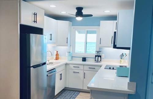 Your comfort is paramount, which is why we provide high-speed internet and three televisions equipped with Spectrum streaming services for your entertainment. Recent upgrades include a new range and dishwasher (January 2022) and a microwave, washer, and dryer (April 2022). Additionally, a new split AC system was installed in April 2022, allowing you to control the temperature in each room. Our unit features modern windows that amplify the ocean view while maintaining peace and quiet.