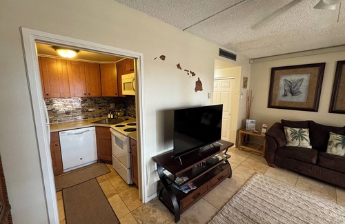 This cozy condo accommodates up to 4 guests, featuring a plush king bed and a pullout couch, making it perfect for couples or small families seeking an unforgettable experience in Hawaii.