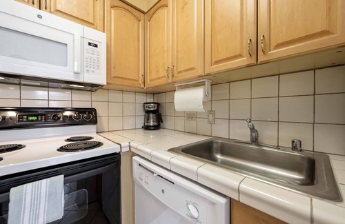 Take a refreshing dip in the pool or unwind beneath swaying palm trees. With just a few steps, you can find yourself on the sandy shores enjoying the beautiful Maui sun. Inside, you'll appreciate the open layout, including a fully equipped kitchen and dining space. Alongside standard appliances, the kitchen is fitted with a toaster and coffee maker, ensuring that your morning routine is seamless. Your private balcony provides a peaceful spot to sip your morning coffee before embarking on your Maui adventures.
