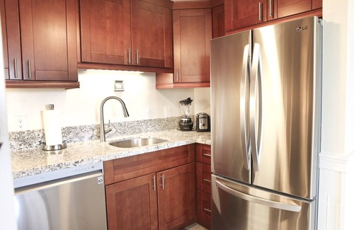Recently remodeled in May 2022, A12 promises comfort for two guests. Rest well on the new King bed, and enjoy cool tile floors. A brand-new Mitsubishi A/C unit (installed June 2023) in the main living area ensures a pleasant environment throughout the condo. Each room features ceiling fans to enhance airflow. After an adventurous day exploring the wonders of Maui, unwind while streaming your favorite shows on the Smart TV from the cozy sectional sofa.
