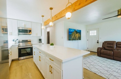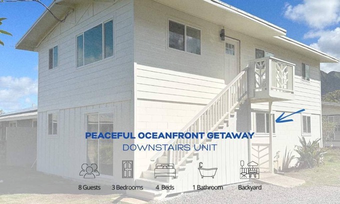 Relax with the whole family at this peaceful home. Our newly renovated oceanfront property is the perfect island getaway. With ocean and mountain views from your doorstep yet just minutes from the best local food and famous attractions you will enjoy the perfect balance of location without inconvenience. This beautiful 3 bed 1 bath home that sleeps up to 8. Our half acre lot has 5 total units if youʻre looking for more space!