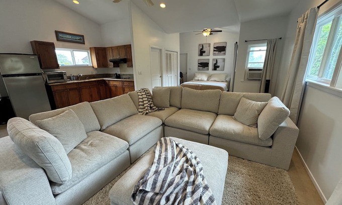 Your stay at the Private Studio – just a 4-minute walk from Lanikai Beach – positions you perfectly to explore all that Kailua has to offer. Spend your mornings lounging on the beach or partake in water sports like paddleboarding and snorkeling in the clear, calm waters. For families, the studio comfortably accommodates two adults and two children, featuring a king-size bed, a spacious sectional couch, air conditioning, and smart TV options for your convenience. Explore nearby attractions such as the picturesque Kailua Town, where you can enjoy local shops and cafes. With ample parking for two cars and a dining table for family meals, this studio provides everything you need for a memorable Hawaiian getaway while being just minutes away from the area's natural splendor.