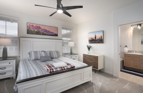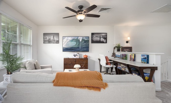 Prepare for beach days equipped with surfboards, boogie boards, chairs, umbrellas, sand toys, and more. The master bedroom is designed for comfort with luxurious linens and towels, while the bathrooms come stocked with quality towels and essentials, including a hairdryer and iron.