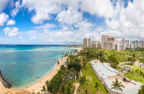 Enjoy modern conveniences that enhance your stay, including reliable WiFi, refreshing air conditioning, and a washer/dryer to keep your vacation hassle-free. The Castle Waikīkī Shore stands out as the only beachfront condominium in Waikīkī, offering you spectacular views of the shimmering Pacific Ocean, the iconic Diamond Head, and the lush greenery of Fort Derussy Park.