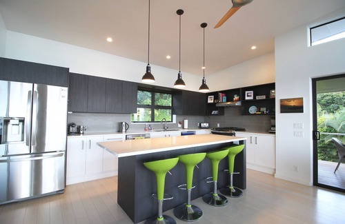Picture yourself unwinding in a beautifully designed 2-storey house featuring panoramic ocean views from every living space and bedroom. Located in a tranquil residential area overlooking the waves at Sunset Beach, this is the ideal retreat for families and friends seeking a peaceful getaway. You have access to high-speed WIFI (400mbs), making it convenient for workcations.