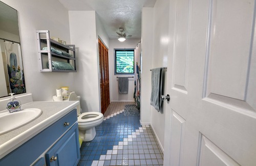 Come to our home to play, relax, and restore your spirit in this Tropical Hideaway. A key note: the Hawaiian Paradise Park area utilizes catchment water, sourced from rainwater collected in a tank and treated with a UV light system for cleanliness. Most guests find it safe to drink, but we provide bottled purified water for the first few days. You may purchase additional bottled water or refill containers at nearby natural springs if preferred.