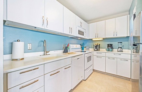 Valley Isle 1110 is an exquisite corner unit situated on the 11th floor of the resort. This remarkable space features additional windows that provide breathtaking panoramic views from the kitchen, bedroom, and living room. Recently upgraded with new flooring, the condo is elegantly decorated to amplify the charm of the island.