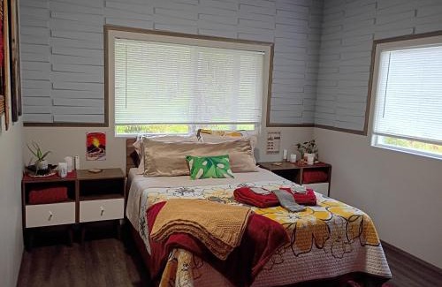 Welcome to Volcano Home, a captivating retreat located in Mountain View, just a scenic 23 miles away from both the Pana'ewa Rainforest Zoo and Kilauea. This charming villa is your perfect escape, providing exclusive access to a serene patio and complimentary private parking.