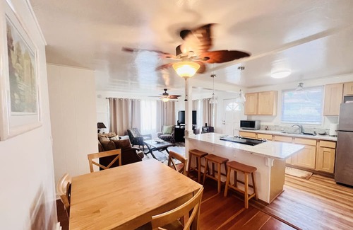 Our cottage features delightful tropical island decor, creating a welcoming ambiance for all guests. You'll find accommodations ideal for restful sleep, with a queen bed and a full-size bed at your disposal. For your comfort, there are 3 split Air Conditioning Units, along with HDTV and DSL wireless high-speed internet to keep you entertained and connected. A well-equipped kitchen awaits to fulfill your culinary desires.